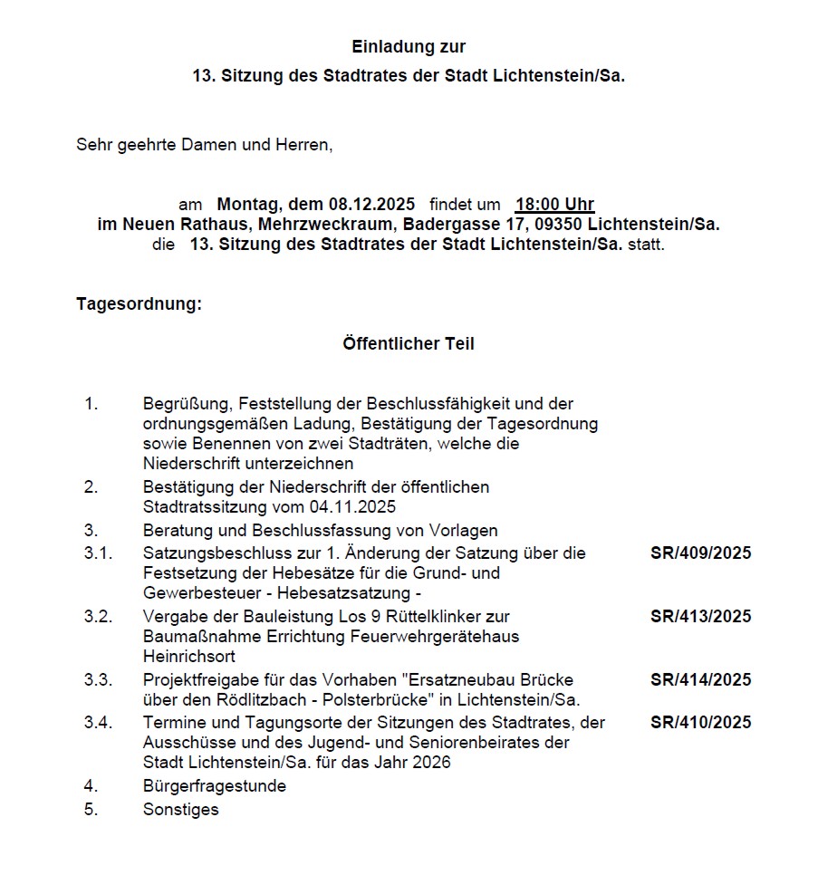 TOP 3.3: Projektfreigabe für das Vorhaben „Ersatzneubau Brücke über den Rödlitzbach – Polsterbrücke“ in Lichtenstein/Sa.