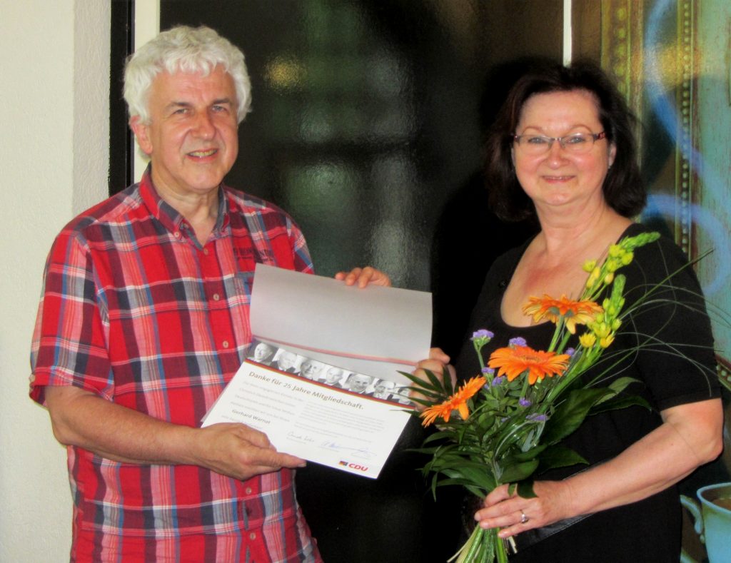 Seit 25 Jahren engagiert sich Gerhard Warnat in der CDU. Er steht für christliche Werte, denkt und handelt demokratisch. In all den Jahren seines Engagements als Stadtrat, Vorsitzender oder aktuell als stellvertretender Vorsitzender der CDU-Fraktion im Lichtensteiner Stadtrat hatte und hat er stets das Wohl der Menschen in unserer Stadt vor Augen. Er macht sich Entscheidungen nicht leicht, überzeugt vor allem durch seine sachliche Art und steht fest zu seiner Überzeugung. Gerhard Warnat lebt den Leitspruch unseres Stadtverbandes: „Suchet der Stadt Bestes.“