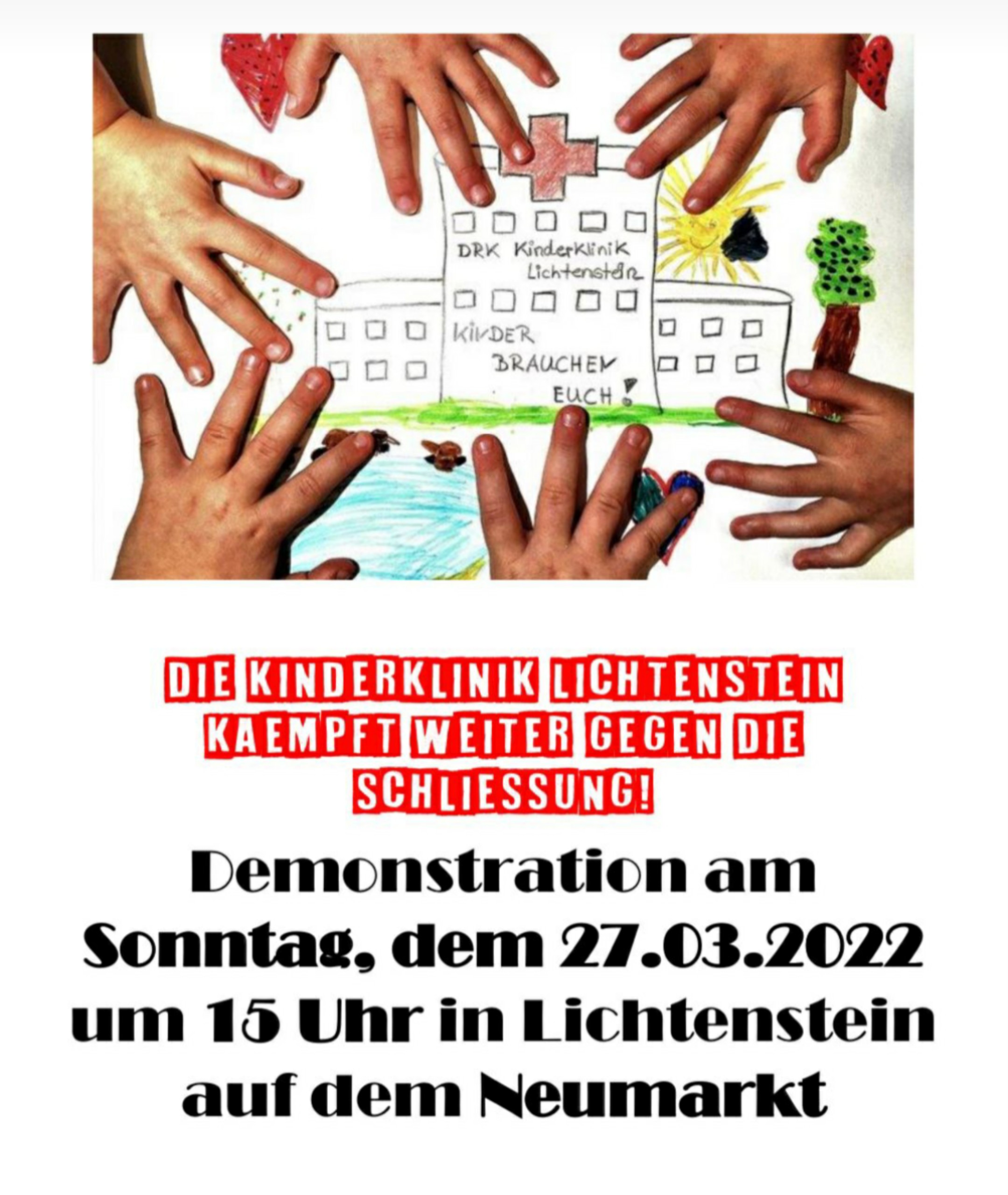 unsere vollstationäre Kinder- und Jugendklinik der DRK Krankenhaus Lichtenstein gGmbH ist seit dem 11. März geschlossen. Das wollen wir so nicht hinnehmen und dem weiteren Protest gegen die Schließung Gesicht und Stimme geben.
