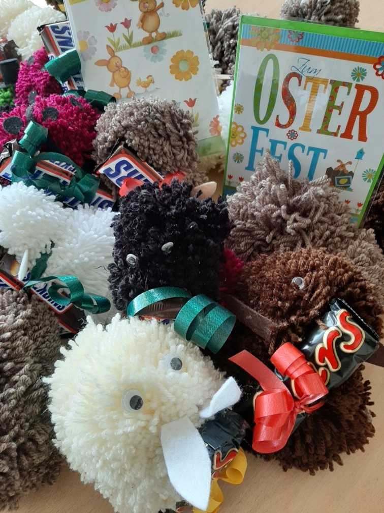 Als Dankeschön haben die Mitarbeiterinnen mit den Bewohnerinnen und Bewohnern für alle Kinder der Kinderhilfe einen Ostergruß aus Wollresten gebastelt. Entstanden sind kleine Kuscheltiere – Häschen, Küken, Igel … „Für die Bewohner war das eine schöne Abwechslung.“, ließ uns Frau Rothemund wissen. Wir meinen: eine gelungene Überraschung und sagen HERZLICHEN DANK.