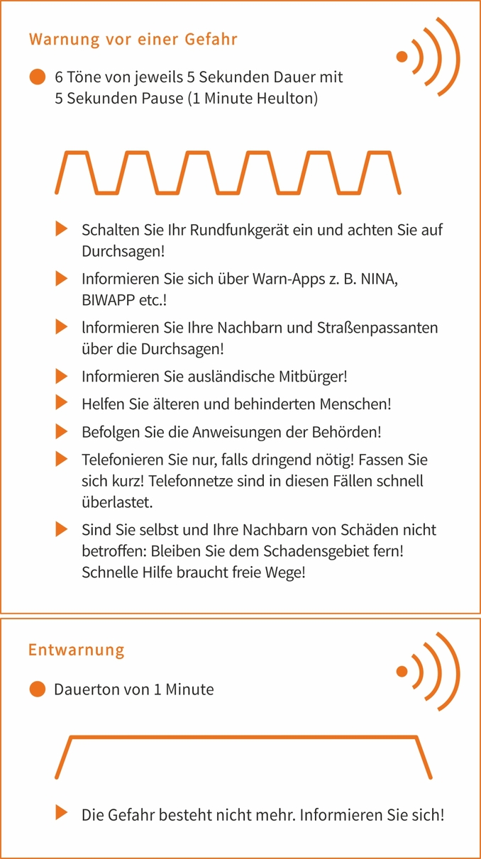 - Sirenensignale – Signalprobe, Feueralarm, Gefahrenwarnung und Entwarnung